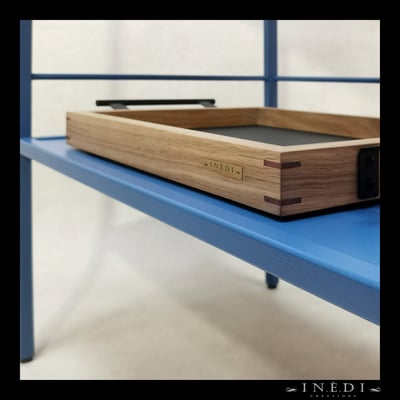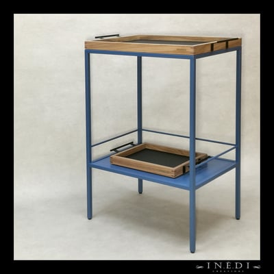 Ensemble de plateaux et consoles fabriqués sur mesure pour le restaurant "Le Relais des Plages"