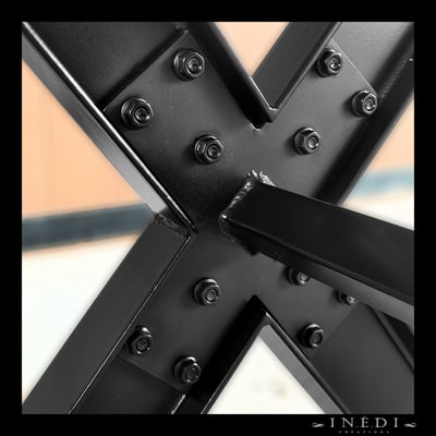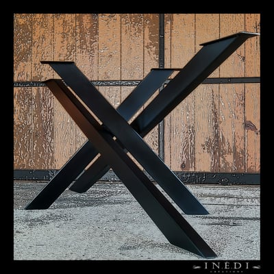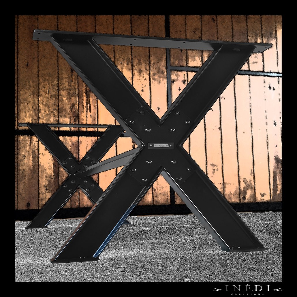 Ce pied de table en X sur mesure recevra un plateau de 2500x1000.