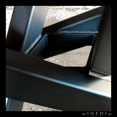 Réalisé avec du profilé IPE de 100mm et thermolaqué en noir mat 9005 texture lisse.