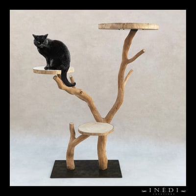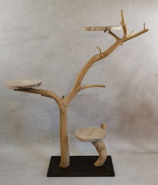 Tous les arbres à chats sont réalisés à partir de branches de chêne ( pas de bois flotté) ramassées lors de coupes d'exploitation. Il faut ensuite les écorcer et les brosser.