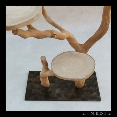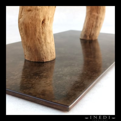 Les socles sont en acier, pour un bon rapport poids / épaisseur. Certains sont peints, d'autres patinés.